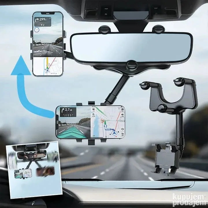 Lako se montira na vaseg retrovizora i moze se okrenuti za 360 stepeni.