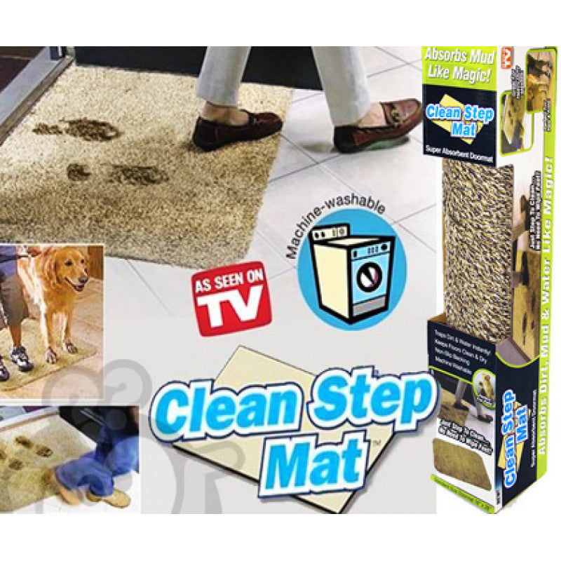 Clean Mat upija blato poput magije! Clean Mat, super upijajući otirač trenutno zadržava nečistoću i vodu, održavajući podove čistim i suvim. Neklizajuća podloga od lateksa neće klizati ili trljati podove. Opis Opis: - Clean Mat upija blato poput magije! Clean Step Mat, super upijajući otirač trenutno zadržava nečistoću i vodu, održavajući podove čistim i suvim. -