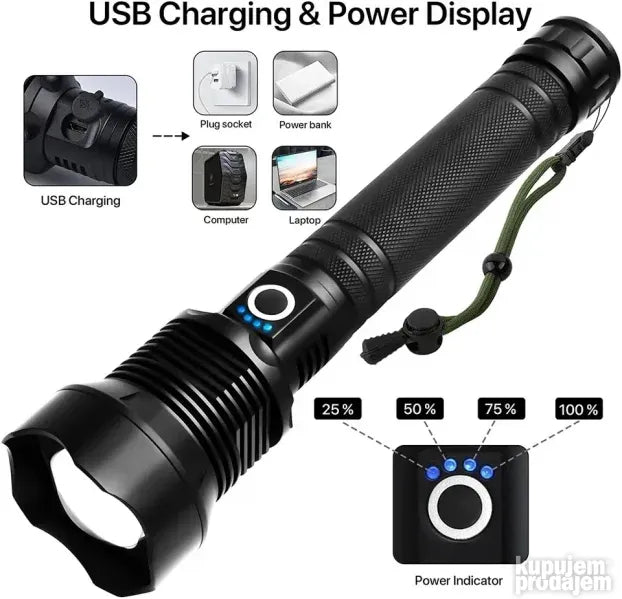 Štaviše, naša LED baterijska lampa ima funkciju prikaza snage, tako da možete na prvi pogled odrediti preostalu snagu, a da ne morate da pogađate da li treba da se napuni.